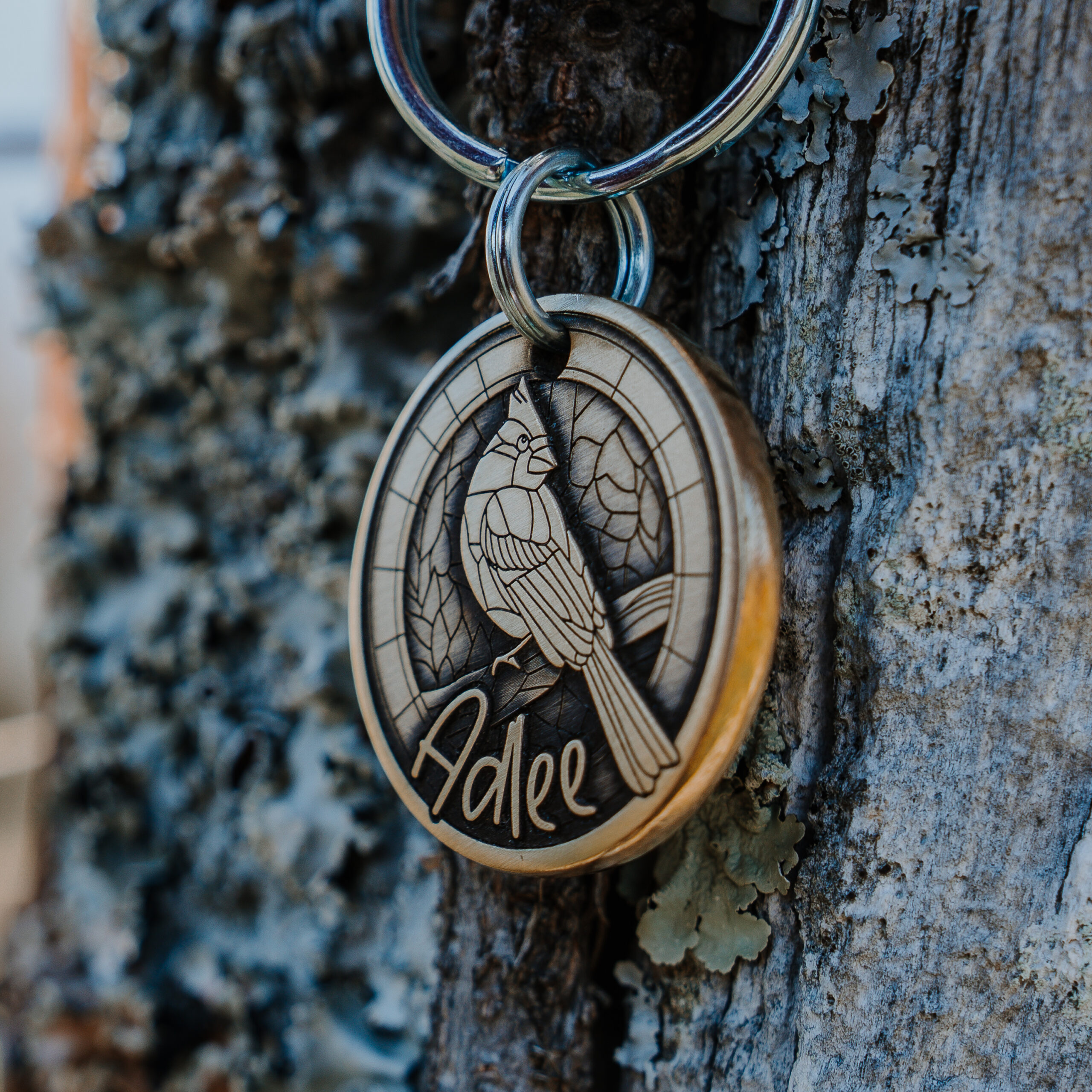 We offer tags in copper, aluminum and brass in 3/4″, 1″, 1.25″ and 1.5″ sizes. Keep in mind that the design will be slightly different on each size in order to scale it up or down. See size suggestions in photos.