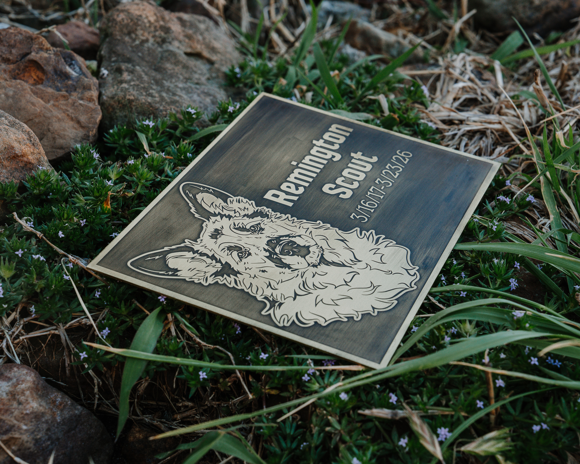 Measuring 5 x 7 inches and made from substantial 0.05″ thick metal, these plaques are designed to feel timeless, meaningful, and beautifully made. The solid brass or copper gives each piece a rich, high-end look, making it a special tribute for a dog, cat, or other cherished pet.